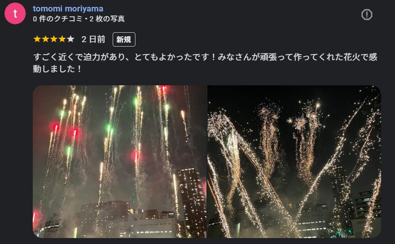 *GooglMap「花火屋クリス」クチコミよりご観覧者様感想抜粋