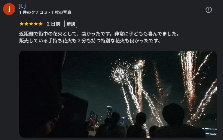 *GooglMap「花火屋クリス」クチコミよりご観覧者様感想抜粋
